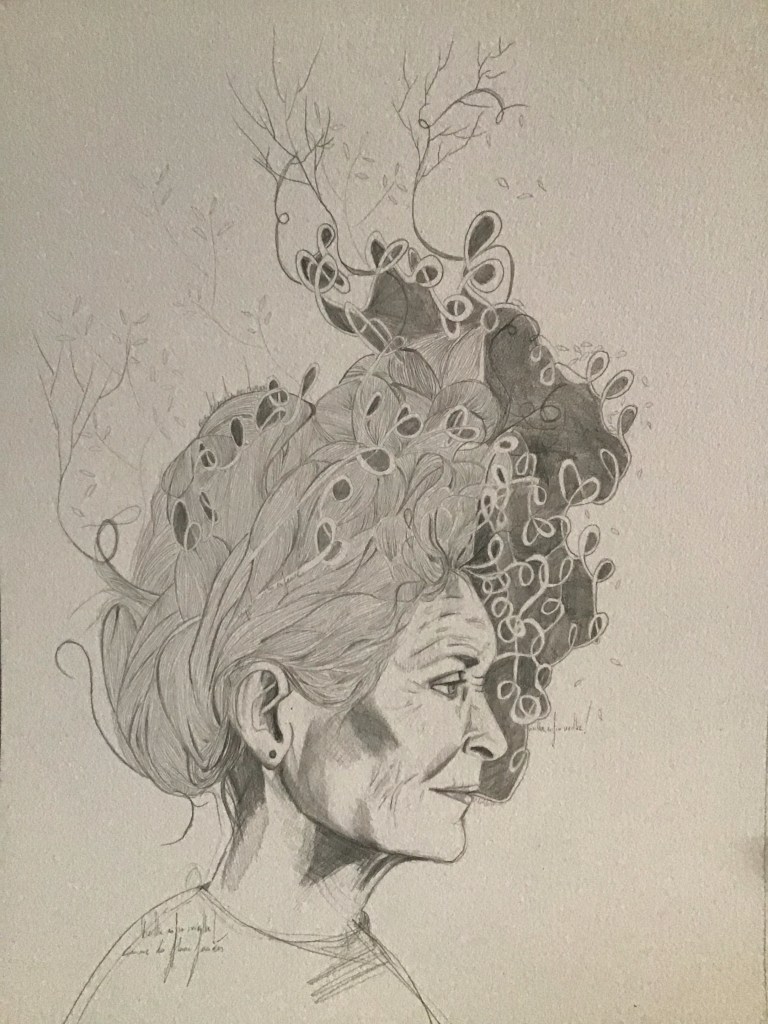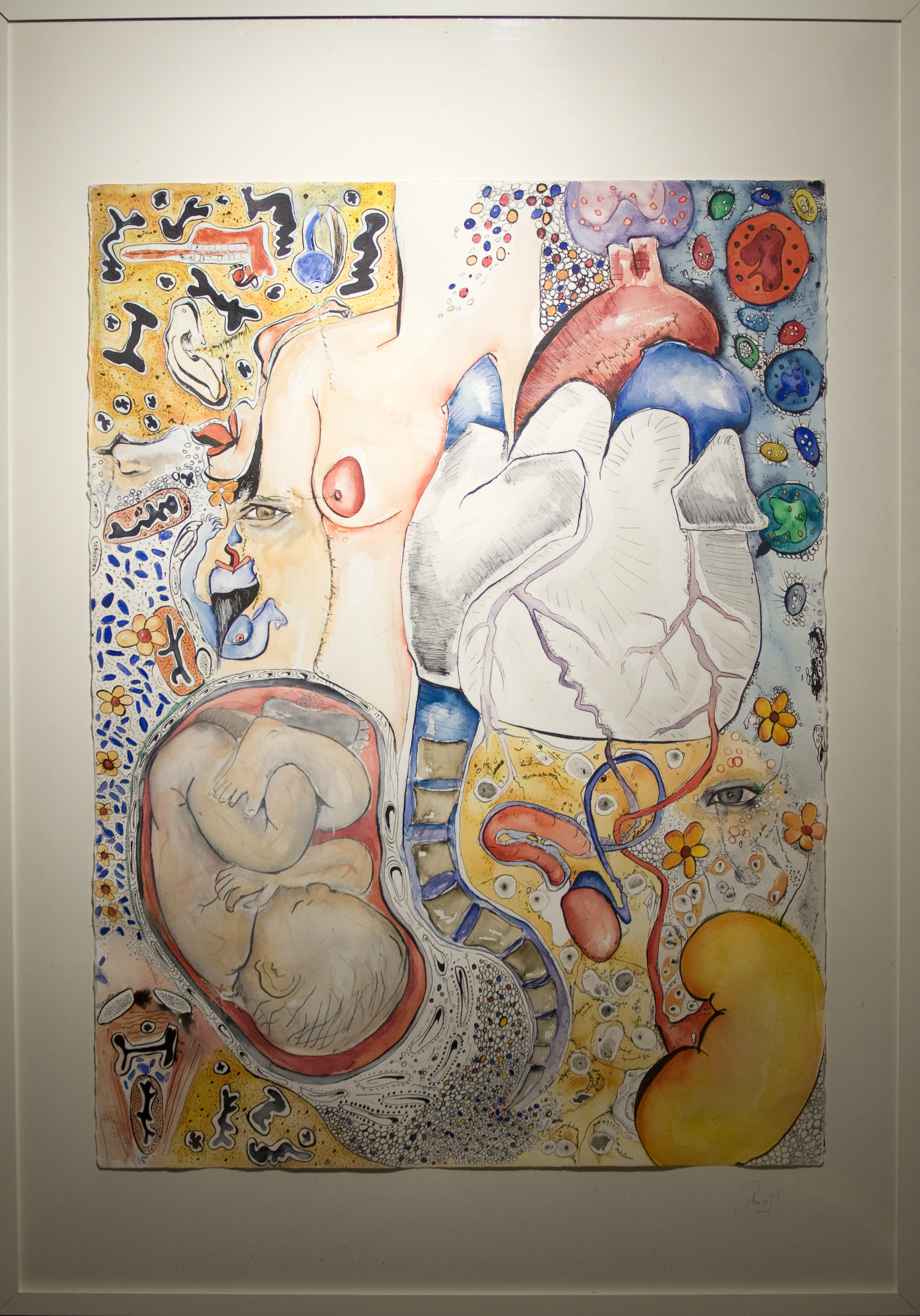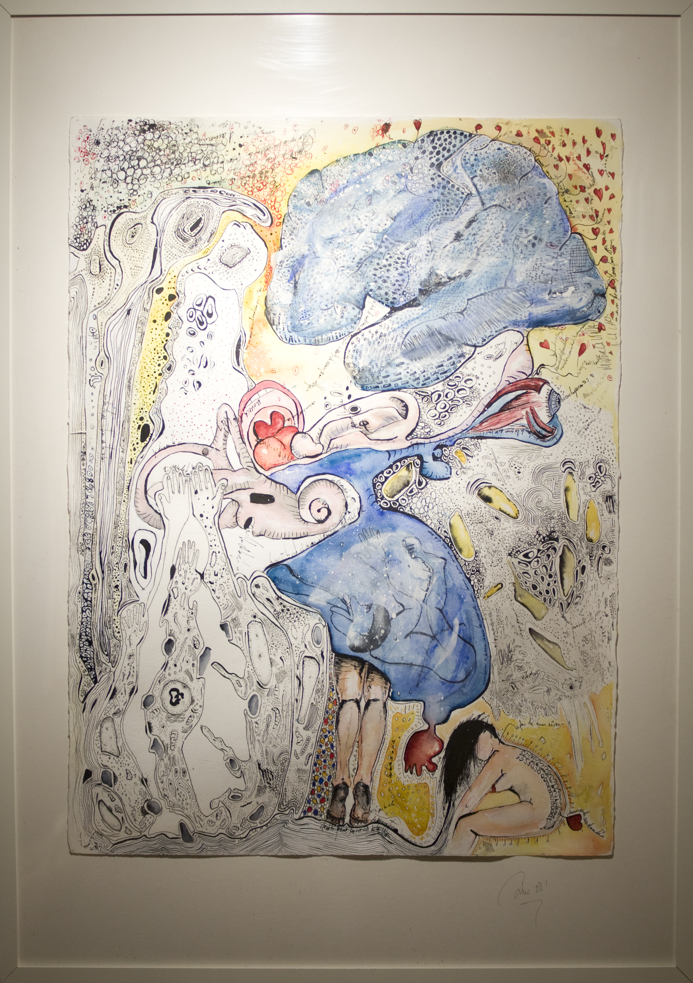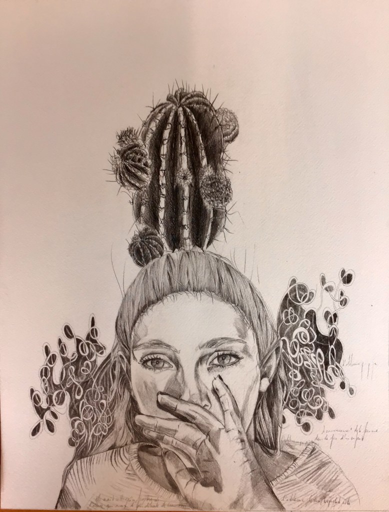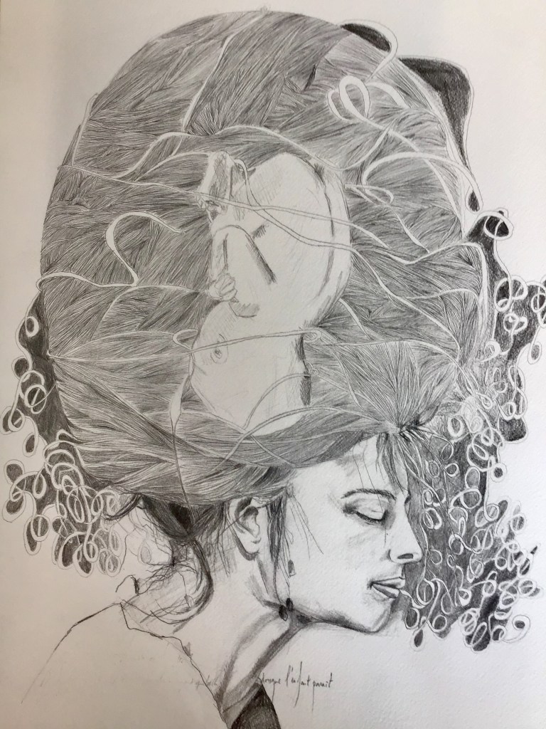 En parallèle à ma formation en arts-plastiques, j’ai fait des études d’infirmière, et lors de ma formation, ce qui m’a le plus fasciné, c’est l’étude anatomique. En 2005, j’ai fait un séjour dans la ville de New-York, j’ai eu l’occasion de visiter l’exposition itinérante: Bodies. Une exposition où le corps humain est décortiqué et montré sans pudeur, un coeur malade d’infarctus, un poumon noir d’un fumeur… et je me suis demandé, comment il serait représenté un coeur malade d’amour? des poumons malade de chagrin? C’est alors, avec l’aide de mes livres d’étude anatomique du corps humain, que j’ai commencé mon projet de Dessins d’une Vie, en 2008.
