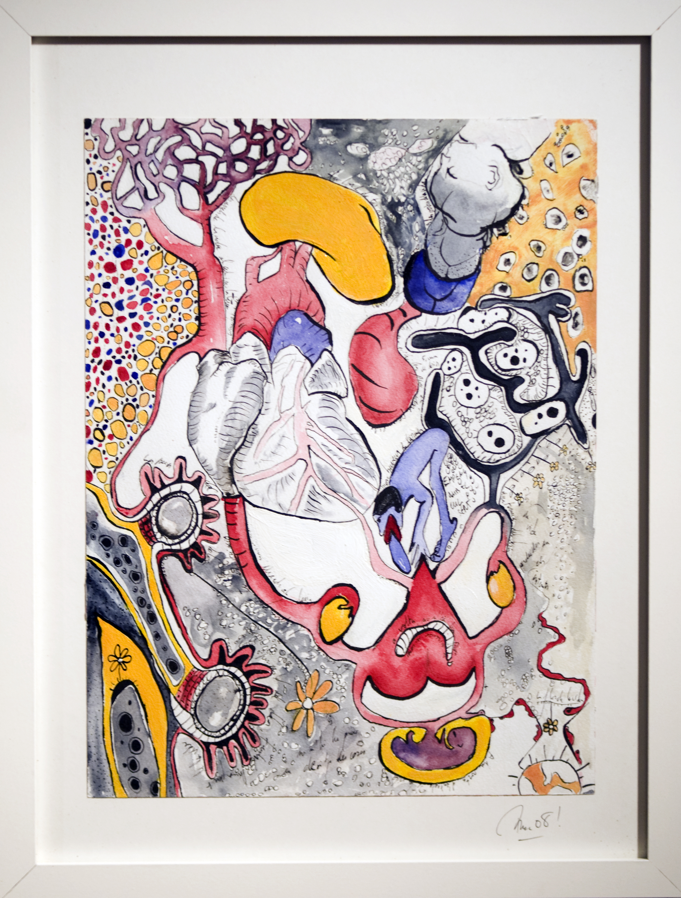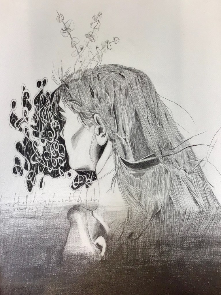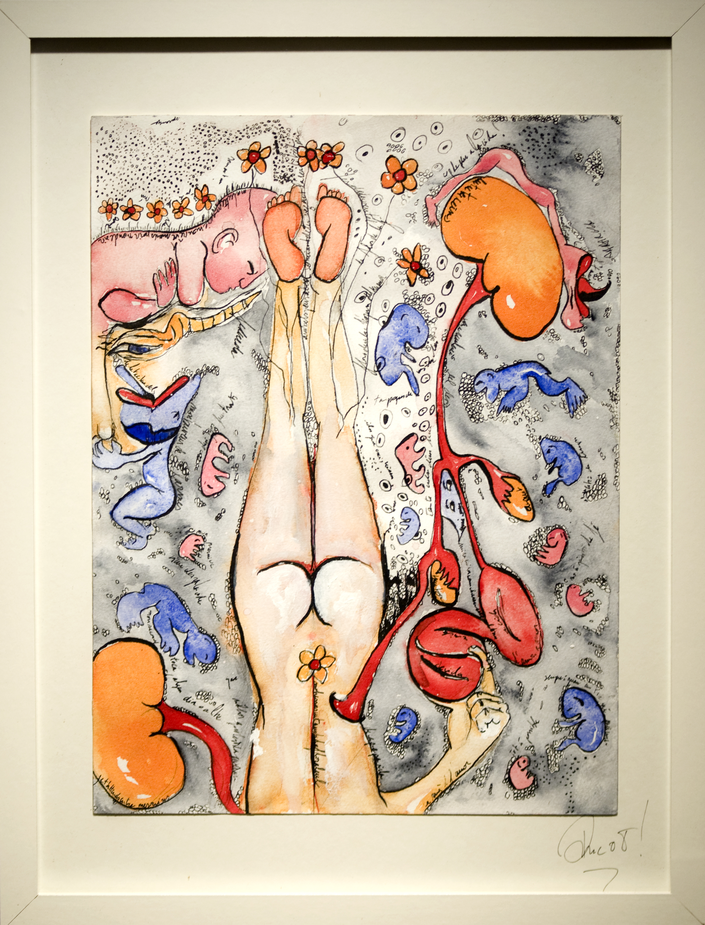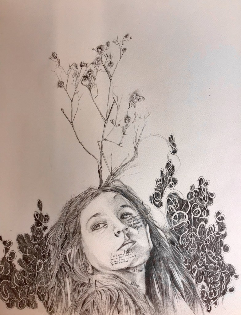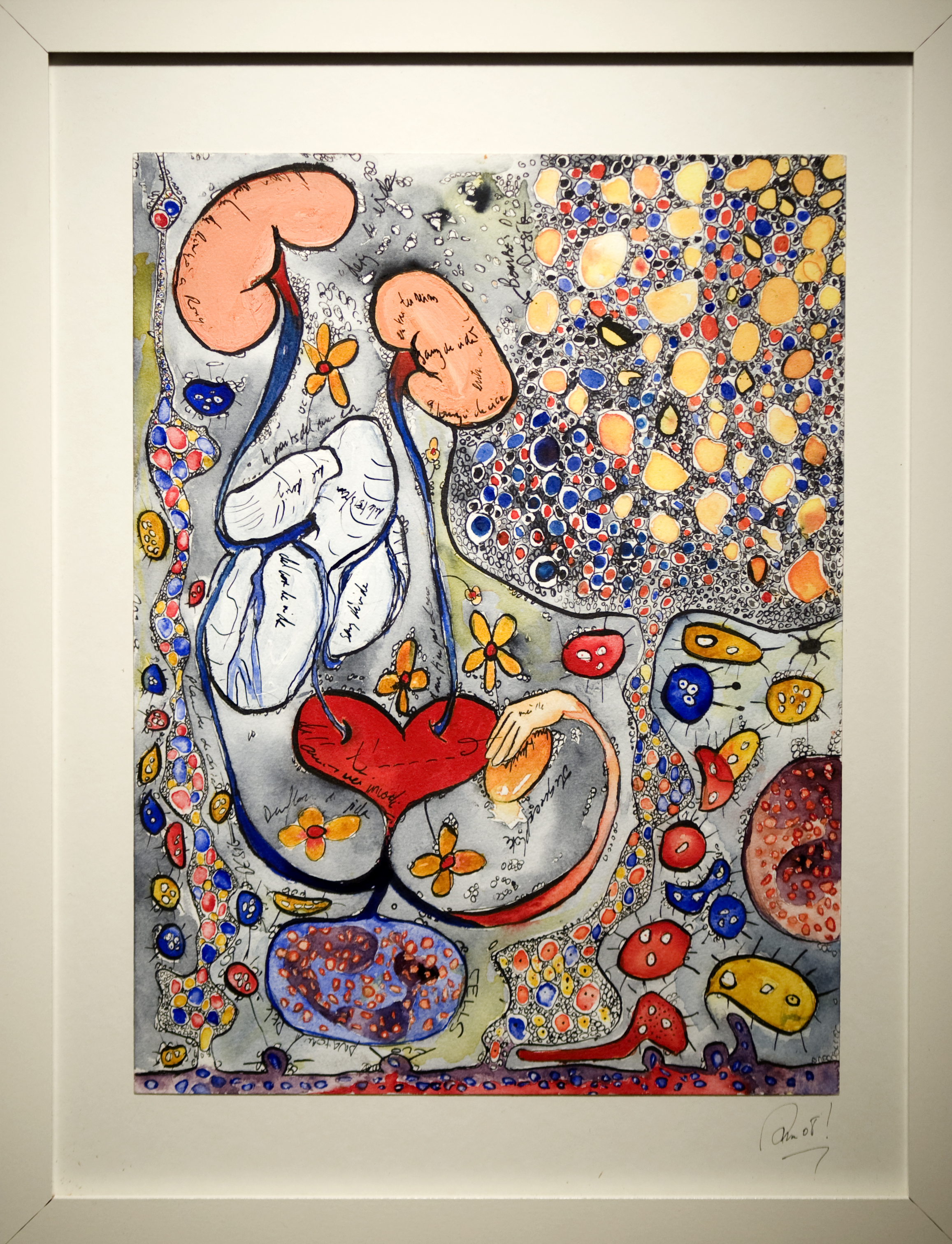 En parallèle à ma formation en arts-plastiques, j’ai fait des études d’infirmière, et lors de ma formation, ce qui m’a le plus fasciné, c’est l’étude anatomique. En 2005, j’ai fait un séjour dans la ville de New-York, j’ai eu l’occasion de visiter l’exposition itinérante: Bodies. Une exposition où le corps humain est décortiqué et montré sans pudeur, un coeur malade d’infarctus, un poumon noir d’un fumeur… et je me suis demandé, comment il serait représenté un coeur malade d’amour? des poumons malade de chagrin? C’est alors, avec l’aide de mes livres d’étude anatomique du corps humain, que j’ai commencé mon projet de Dessins d’une Vie, en 2008.