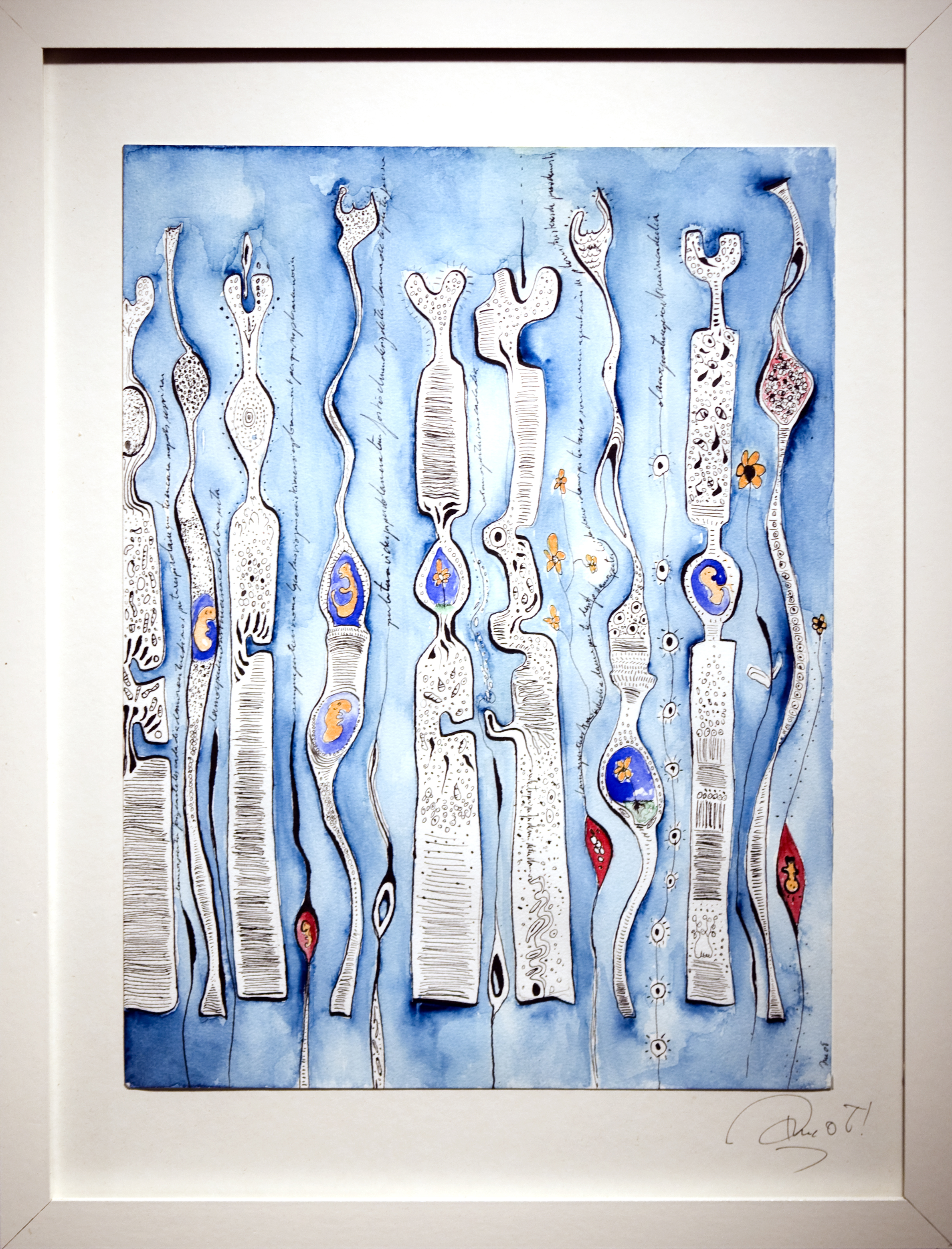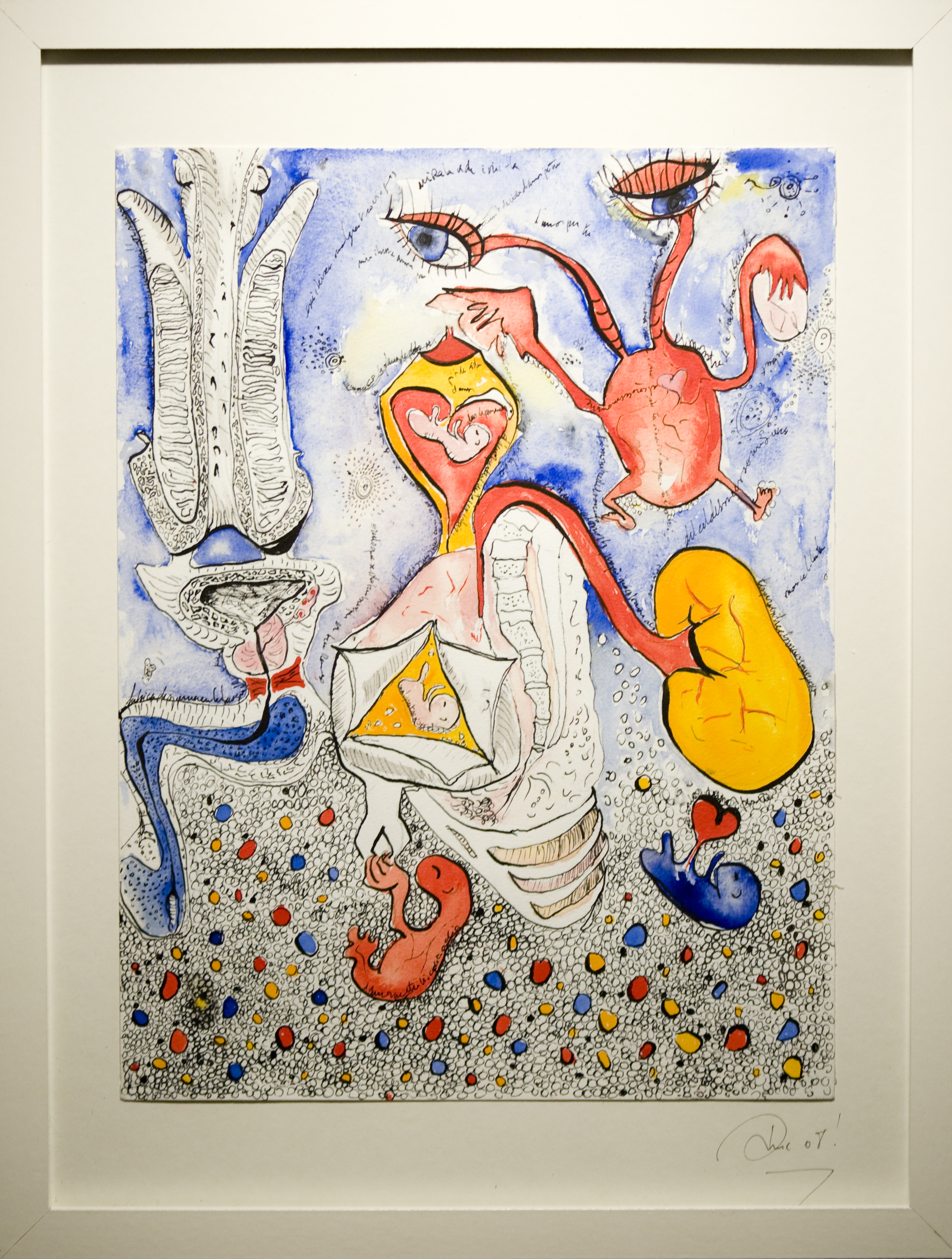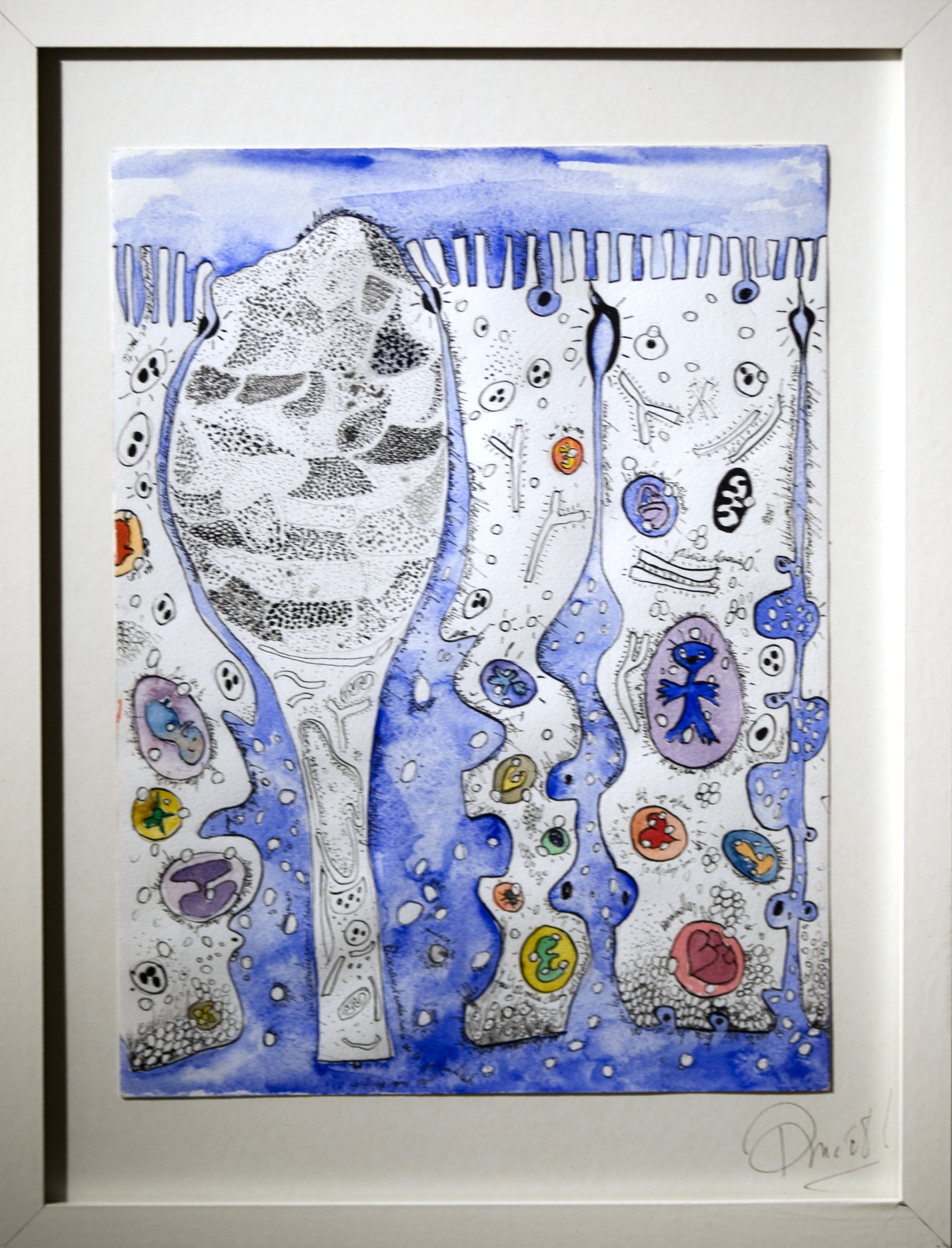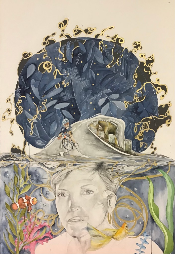 En parallèle à ma formation en arts-plastiques, j’ai fait des études d’infirmière, et lors de ma formation, ce qui m’a le plus fasciné, c’est l’étude anatomique. En 2005, j’ai fait un séjour dans la ville de New-York, j’ai eu l’occasion de visiter l’exposition itinérante: Bodies. Une exposition où le corps humain est décortiqué et montré sans pudeur, un coeur malade d’infarctus, un poumon noir d’un fumeur… et je me suis demandé, comment il serait représenté un coeur malade d’amour? des poumons malade de chagrin? C’est alors, avec l’aide de mes livres d’étude anatomique du corps humain, que j’ai commencé mon projet de Dessins d’une Vie, en 2008.