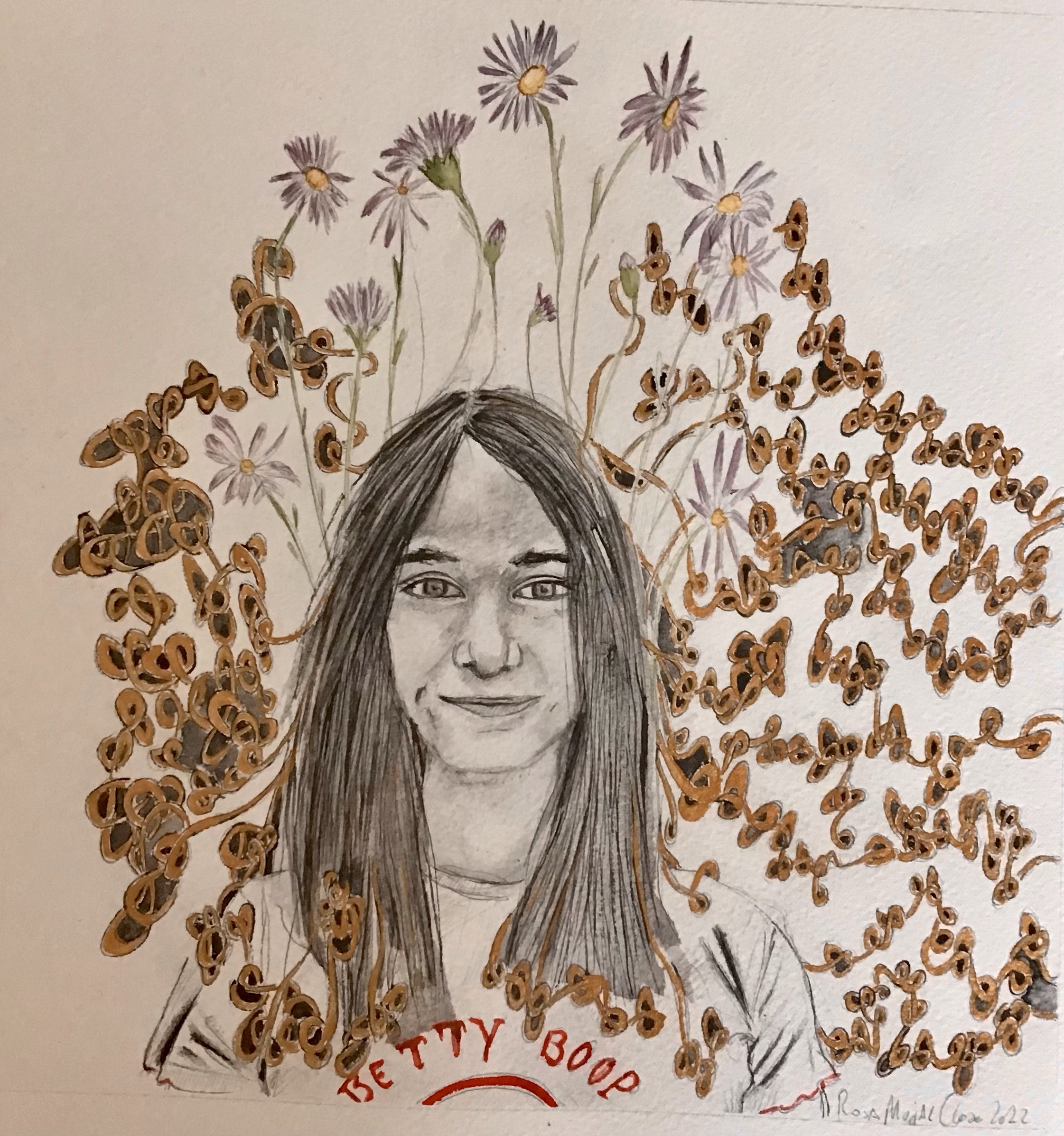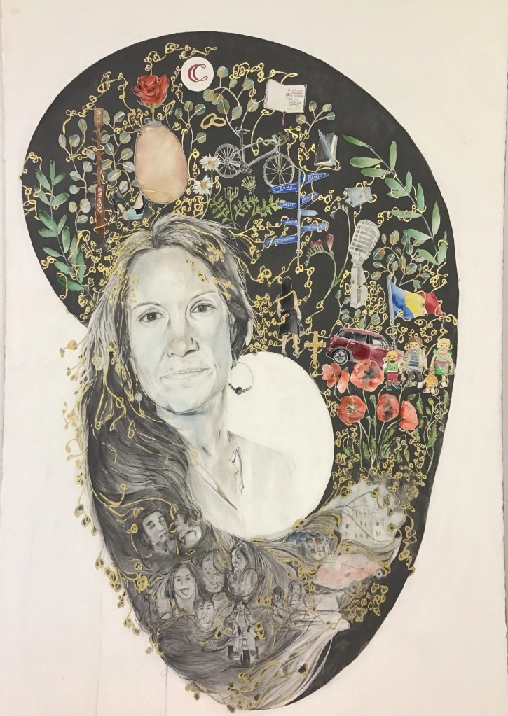 Some big portraits drawings of 5 women who were born in the 70`s.